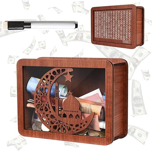 Оваа дрвена касичка е опремена со напредна технологија за броење, што овозможува прецизно следење на вашите монети и банкноти. Јасниот приказ на бројките и ознаките ви помага да го видите напредокот во реално време и да го поедноставите управувањето со вашите заштеди.