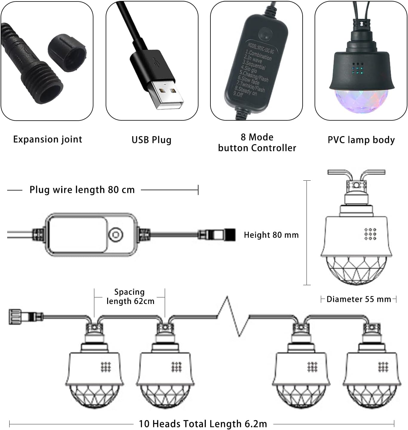 Осветлете ја вашата сцена со стил и вкус! Направете ја вашата следна забава незаборавна со овие RGB LED светилки на кабел! Овој производ е совршен за создавање празнична и весела атмосфера за секоја пригода. Со својот иновативен дизајн и висококвалитетни материјали, оваа низа светилки е идеален подарок за пријателите и семејството.